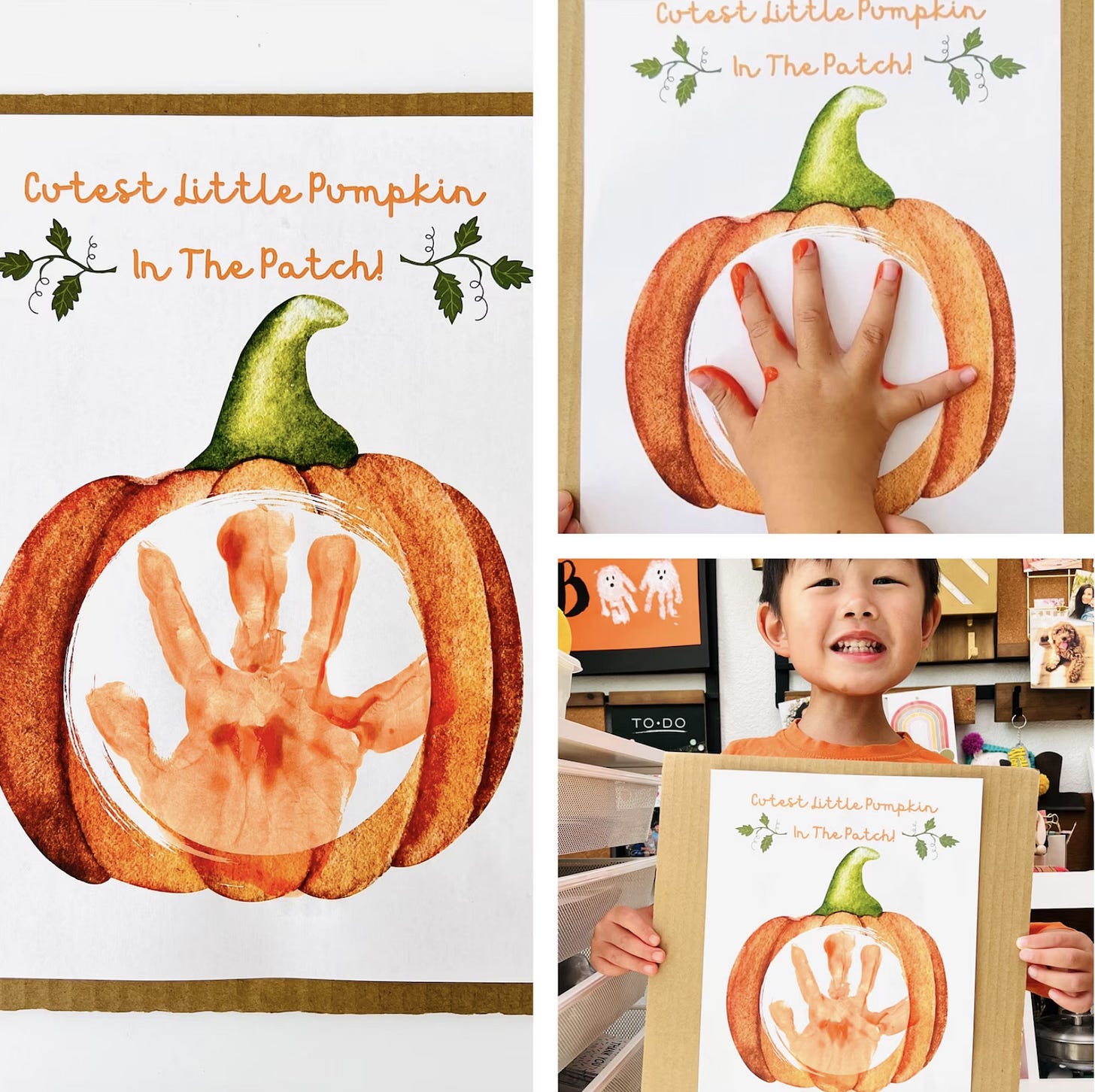 Make this adorable pumpkin handprint keepsake art with your little pumpkin! Get the printable download here.